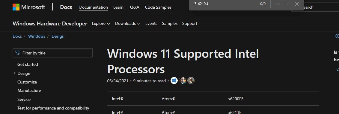 What makes me surprised is the fact the CPU on my main laptop (an Intel Core i5, Haswell, from 2014) is not listed as supported for Windows 11 at all.